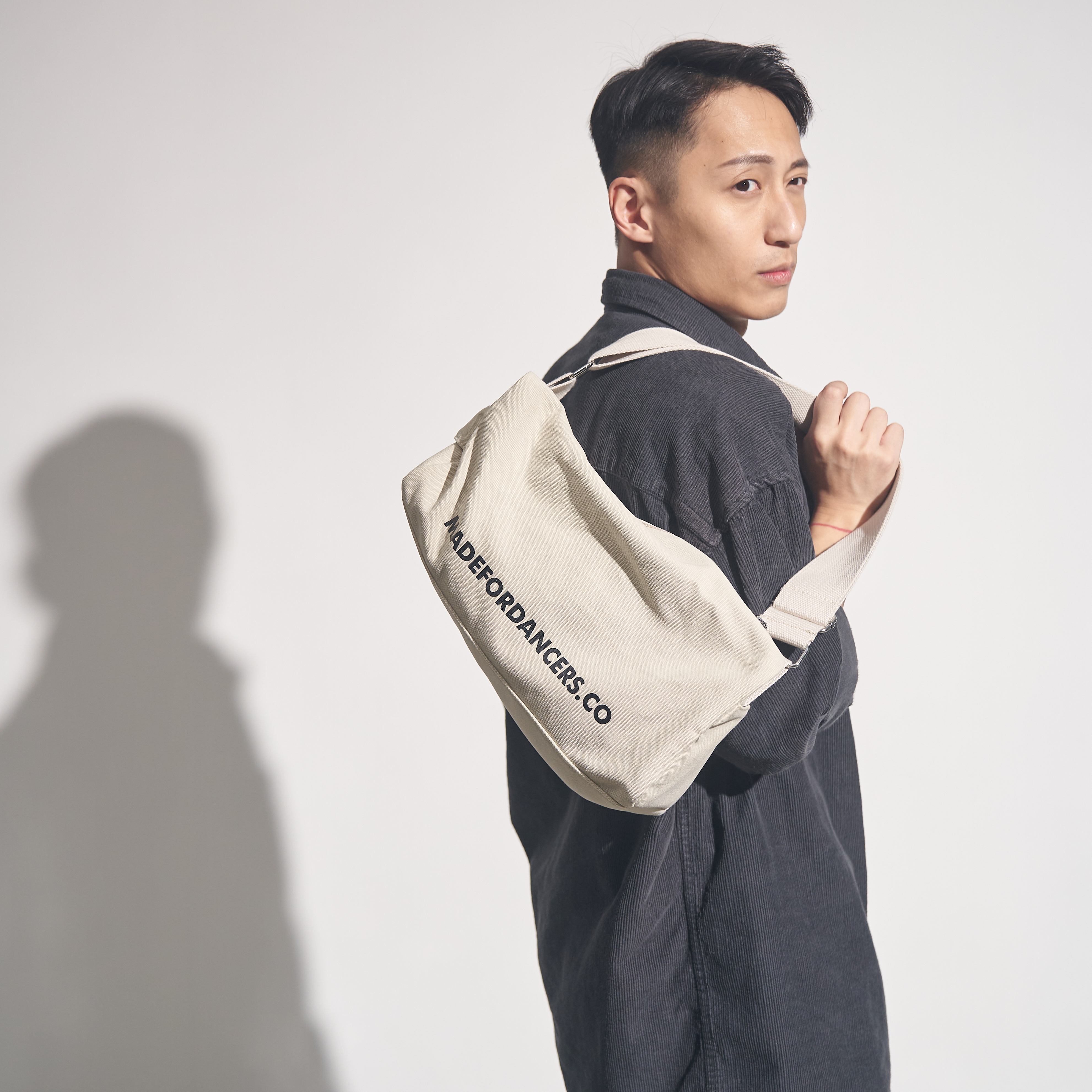 MADEFORDANCERS.CO Canvas Duffle • Available in Black/ Khaki/ White • Canvas made duffle bag • Adjustable body strap • Worn on the shoulder or across the body • Internal & external zip pocket design • Logo print • One Size (35cmX14cmX16cm) STOCK ITEM 2-3 business days to HK 7-14 days to the rest of the world • NO RETURN OR REFUND FOR MFD APPAREL • Measurements might be different depending on the measurement method • Product color may differ slightly from actual color depending on the resolution of your monitor • The color of the product showing is most similar to the color of the actual product